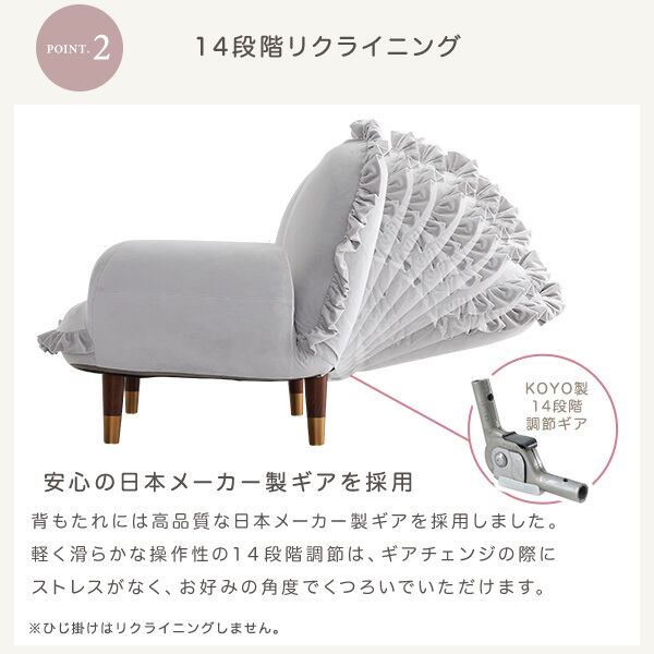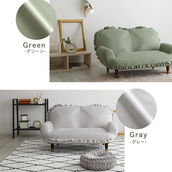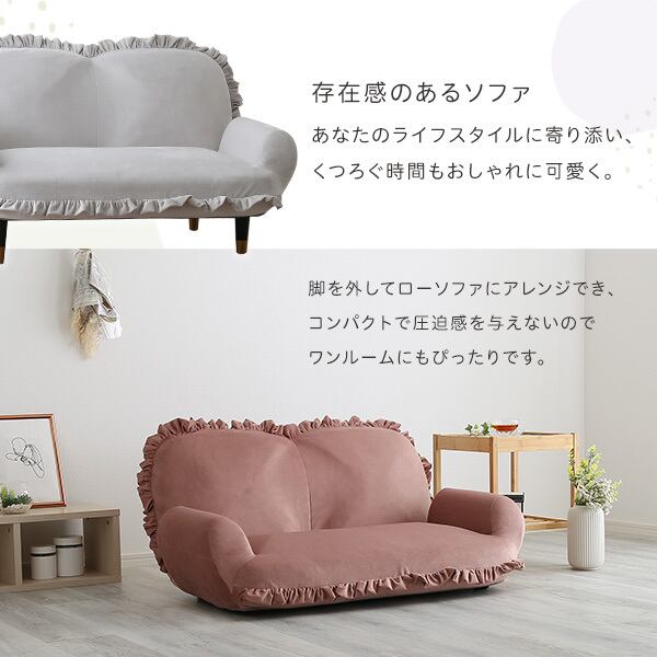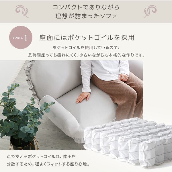 フリルが目を引く可愛らしいデザインで、お部屋の主役になるソファ。