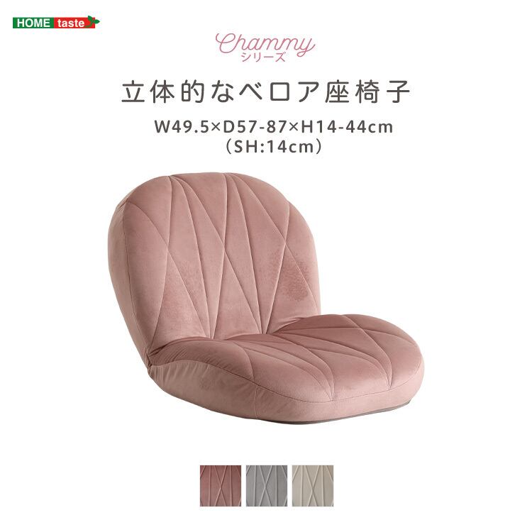 ふんわり上品なベロアの質感と、立体的なキルティングデザインが魅力の大人かわいい座椅子。