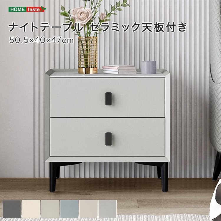 上品でシンプルなデザインに、高品質なセラミック天板をあしらったナイトテーブル。
